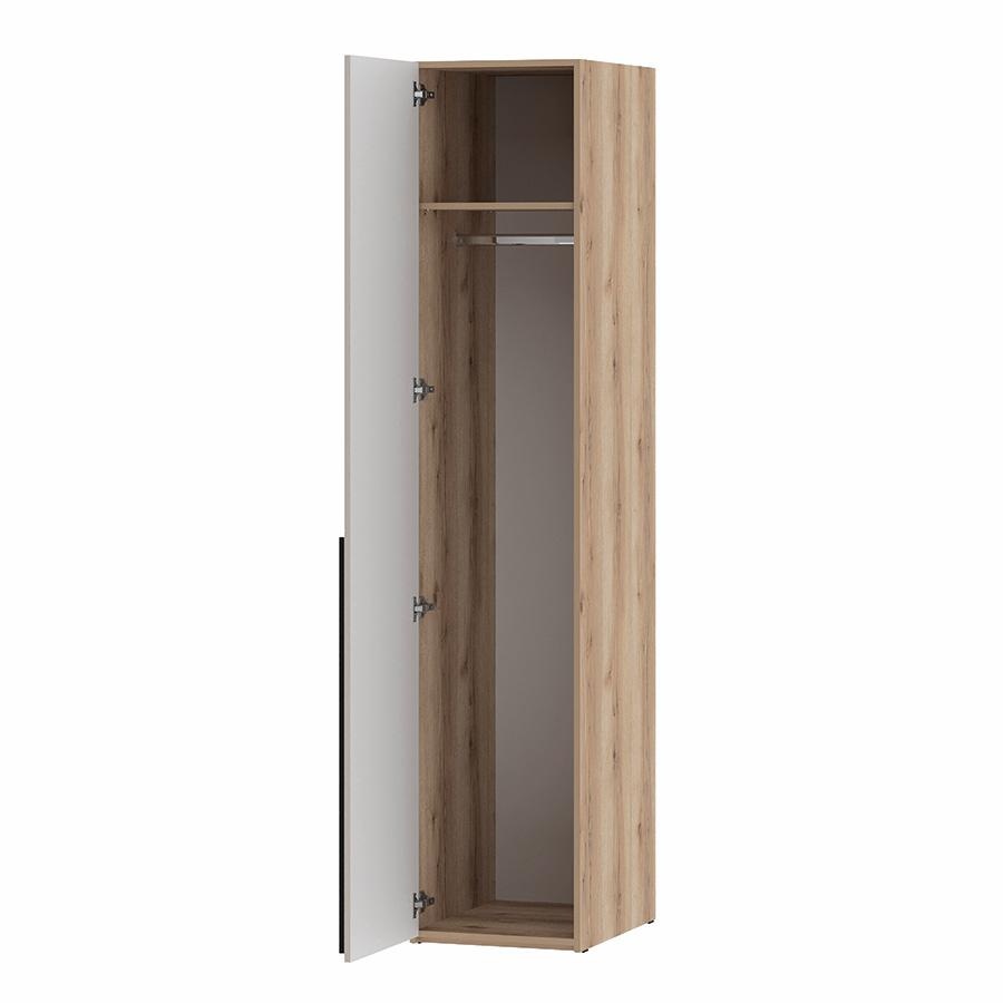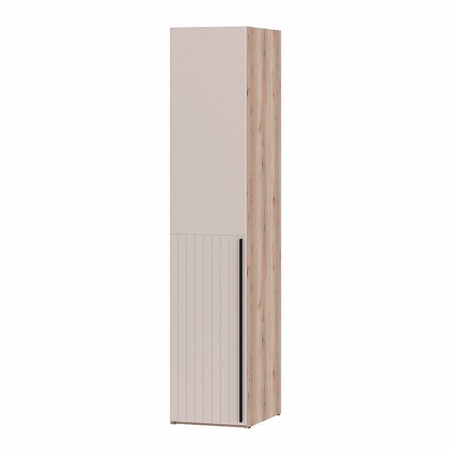 Шкаф однодверный левый 200.02 Арден глубиной 60 см, фасад из МДФ, вертикальные фрезерованные углубления в нижней части фасада создают эффектную игру света и тени, стильная чёрная ручка. Дверь открывается влево.